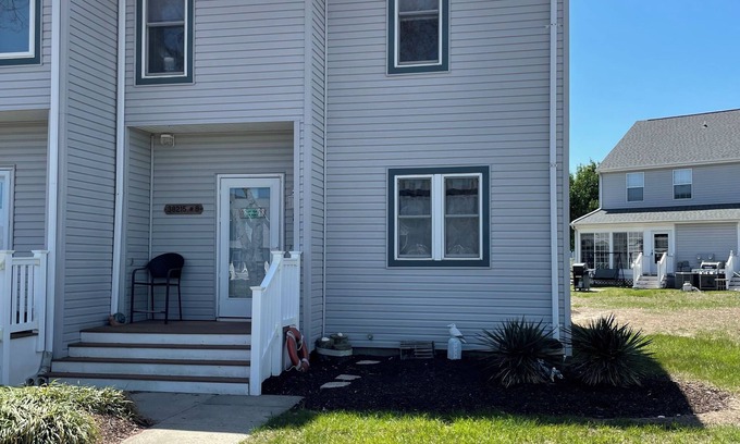 Beachy townhome with 3 bedrooms and 2 and half baths. This townhome has a all you will need in the kitchen with coffee bar and large pantry. Washer and dryer are on first floor for convenience and a half bath right off of the kitchen. The open living room has plenty of space for you to relax and a bonus sunroom with a convertible sofa for extra sleeping space. Upstairs there are three bedrooms. The master bedroom has a queen bed, large dresser, closet and private full bath. Second bedroom has a queen bed, closet and dresser. Third bedroom has a full bed, dresser and closet. Second floor also has another full bathroom with towels provided. All bedrooms have sheets for your convenience. Off of the sunroom there are french doors leading to a spacious deck to enjoy some down time.