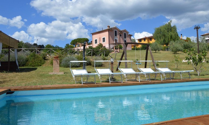 A newly built farmhouse, located two kilometers from one of the most beautiful villages in Italy, San Gemini, and immersed in the Umbrian countryside. We offer our guests an apartment of 90 square meters and equipped with all comforts (living area with kitchen, a double bedroom and a large bathroom). The private park has a swimming pool and Jacuzzi as well as areas equipped with barbecue and gazebo for relaxing.