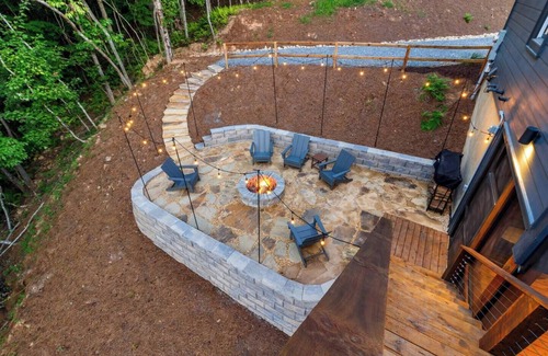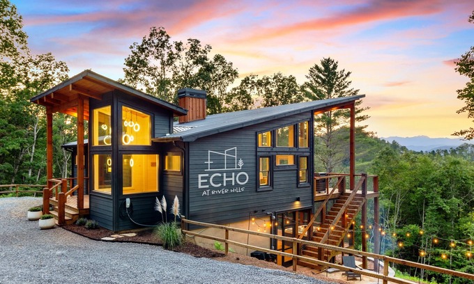Escape to ECHO at River Hills, a luxurious modern chalet in North Georgia’s serene wilderness. Perfect for families, this secluded retreat offers breathtaking Smoky Mountain views, upscale amenities, and all-weather entertainment on the expansive party deck. Relax in the 7-person saltwater hot tub or by the cozy fire pit. Adventure seekers can explore nearby McCaysville and Blue Ridge or fish the Toccoa River. Experience the tranquility and elegance of this magazine-worthy escape.