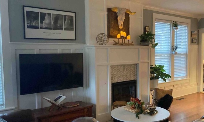 Your family will be close to everything when you stay at this centrally-located home. Lots of amenities & comforts to make your stay pleasant - cozy robes & slippers, soft towels, new memory foam mattresses & comfy bedding, books, games & toys, locally roasted coffee and a variety of teas, popcorn, hot chocolate & instant oatmeal. Everything you need to cook is ready in the kitchen with plenty of space to dine inside or out. Gas fire pit, charcoal grill & patio string lights in fenced backyard.