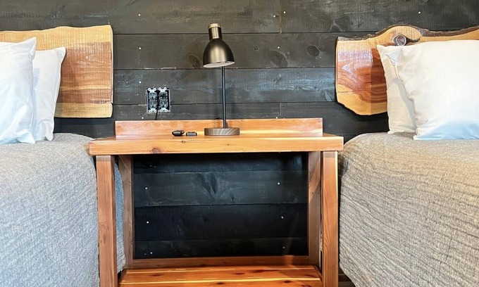 The Moonshine Ford is our newest cabin at Pig Trail Lodging. With two queens in the same room, a bathroom, kitchenette, electric fireplace, Smart TV, WiFi, large front porch, and a charcoal grill, this cabin is perfect for those in need of a small, cozy place to rest. Fresh linens, pillows, and towels are provided, and there is plenty of room to park your truck and trailer by the cabin. If you are coming to ride the OHV trails, hike, or float the Mulberry River, this is your place!