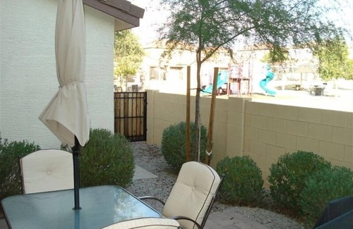 If you want to get outside, walk a few steps to the HUGE pool with restrooms, showers and chairs to bask in the Arizona sun. Right next to the pool is a spacious park with a brightly colored jungle gym for your little ones! All of this is within view of the back patio.