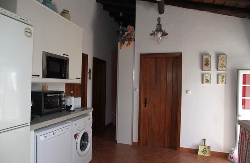 The spacious kitchen with fireplace and typical Alentejo desk you can not miss the traditional calico curtains. Direct door to the terrace allowing a brighter environment. Let the smells of nature mingle with the smells of the cooking. The kitchen is equipped with all the household, this because we want to save time and labor. Enjoy your days of leisure and not worry about the housework.