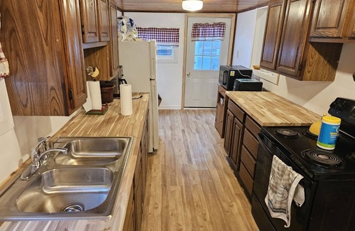 Please remove all trash and recyclables from premises when leaving or a $50 trash removal fee will be added. Towels are available for use; please place them in a plastic bag after use. No washer and dryer. Please keep the premises as you found it. Absolutely no alcohol under the age of 21. Quiet time 10 PM. Please be considerate of the neighbors. 2 night minimum please! We will also accept a reservation for one night for $350.00 . Please extinguish campfires in the evening, or before checking out. Please provide firewood. Bottled drinking water is advised for cooking and drinking if well water is not for you . Brand new electric stove and microwave! New charcoal grill . Freshly painted throughout. Please review rules and policies please!