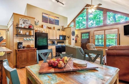 Welcome to The Sky Cabin, your perfect retreat in Columbus, NC! This charming haven features 2 cozy bedrooms, a fully equipped kitchen, and a delightful coffee station. Unwind on the spacious front porch with mountain views, soak in the hot tub, or gather around the fire pit. Enjoy the cozy indoor fireplace in this serene wooded escape. Explore nearby hiking trails, local wineries, and charming small-town attractions. Book now for an unforgettable mountain getaway!