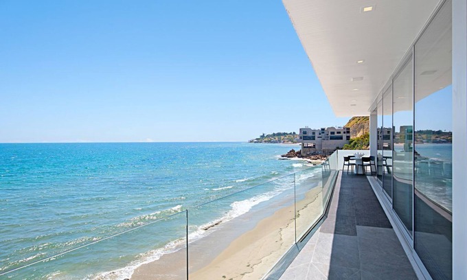 Located on a private street off PCH in Malibu's coveted Corral beachfront community, rests this recently renovated architectural home on 75ft of beach frontage with only one neighboring property and whitewater views. Stepping into the oversized entry, one is greeted by a towering foyer that leads up to one of the best beachfront living/dining areas in Malibu. Highly desired features include meticulous finishes and designer appliances, French white oak hardwood floors, high-ceilings with recessed lighting, floor-to-ceiling sliding glass doors, automatic window treatments, state-of-the-art screening room, and much more.