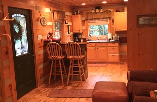 A super nice cozy log cabin located only 6 miles from Mount Airy and the Andy Griffith Museum. It is sitting on a little farm. Miniature donkeys and goats are on surrounding property. We always provide candy, orange juice, milk, breakfast bread or muffins. We are pet friendly.