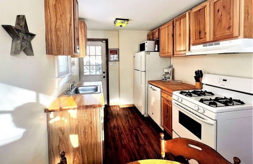 There is additional sleeping space for 2 in the newly renovated exterior studio just steps away from the main house. The quaint and super cozy studio features WIFI with a large LED smart TV, along with heat and air-conditioning. Enjoy the privacy of this cozy studio, just a hop skip and a jump away from the kitchen and bathroom located in the main house. You will feel fully immersed in nature as your fall asleep listening to the soothing sounds of the creek that runs alongside the entire property.