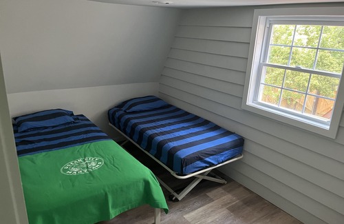 Mystical beach cottage just four blocks from the ocean and walking distance to Fenwick Island. This two bedroom, one bath, renovated cottage sits in the heart of the Caine Woods community below the tall pines. This private rental includes two bedrooms and one bath with accommodation four—two twin beds and a king. A pullout sofa or blow-up mattress is also available for an extra guest or separate sleeping arrangements. The property includes an outdoor patio, charcoal grill, and other serene settings on the property. Mini-golf, arcade, movie theatre, and local food are all close-by. This is a newly available property—please see the 5 star reviews for our other property #1531226.