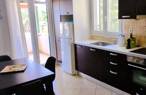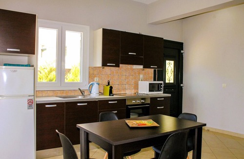 Experience the highest standards in convenience and warmth at Olympia Apartment, an inviting two-bedroom retreat located in the village of Kalami, by Hestia Travel. Indulge in the thoughtfully designed interiors that have been meticulously crafted to create a cosy and practical haven for your stay. Every detail has been carefully considered to ensure a relaxing and memorable escape. The highlight of the Olympia Apartment is undoubtedly the cozy and welcoming living area, where comfort and relaxation come together seamlessly. Here, you can relax, socialize, and make lasting memories with your loved ones, all in a carefully designed leisure environment. Unleash your culinary skills in the fully equipped kitchen, including a central hub designed to meet all your cooking needs. Here, you can relish the experience of preparing delectable local dishes in a practical and enjoyable setting.