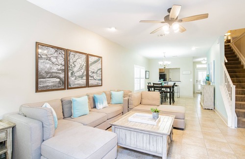 Bring the whole family! This beautifully appointed, clean, and inviting Banana Bay townhome is 2,170 square feet and has living areas both upstairs and downstairs so guests have plenty of room to stretch out. It is an expansive retreat offering a private inlet and a large white sandy beach for every type of vacationer to enjoy. Sunbathe and watch Perdido's boating community meander past or discover their fishing honey hole and catch dinner. It is also a great place to launch your kayak if you want to explore the shoreline or go visit the small islands. This is a gated community for peace of mind. There are safe sidewalks for bicycling or walking down to the public access on the Gulf of Mexico. You can enjoy the beach there or you might want to visit the nearby National Seashore Park with 8 miles of undeveloped squeaky white beaches and sparkling emerald-colored water that stretches out to an endless horizon. Read, relax, or watch a movie on your 55" tv. You can send the kids or teens upstairs to do the same in their comfy living room. How does a cookout or a shrimp boil sound? Perdido Key has great seafood markets close by and grocery shopping is just across the bridge. The on-site fitness center, sauna, and steam room invite you to reset and restore.