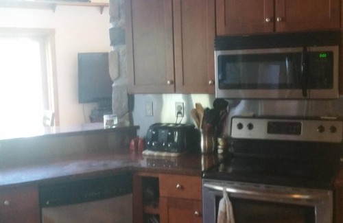 3 bedroom.. 2 full bath... washer and dryer.. granite countertops.. stainless steel appliances... beautiful 30 x 18 foot deck with gas grill.. plenty of parking for vehicles and trailers... access to state game lands out the back door yet walking distance to Fin Fur and Feather or the Mountain Top Tavern ... just outside the beautiful Pine Creek Valley... just a few miles from rail tail.. hunting atv and snowmobile out the back door.. The cabin does have room for 8 but the guest rooms downstairs are smaller w a bunk. 8 adults in this house would be tight quarters and not recommended.