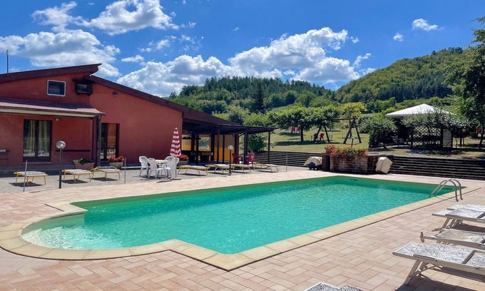 The completely independent apartment has a private outdoor space and a beautiful air-conditioned veranda where the well-equipped kitchen has been refitted. In the outdoor area, there are 2 swimming pools plus 1 children's pool and a mini hydro-massage pool. In all, this holiday home has all the ingredients for a wonderful stay with family or friends. The center of Piobbico is 6 km away where you can shop for your stay. Bath rivers Mercatello sul Metauro is 26 km away. A bar and restaurant are available in the area. It is possible to visit the farm which is part of the Agriturismo. The holiday home complex features a bowling, tennis court, and a five-side football pitch for sports enthusiasts. The grass field, moreover, is to be considered a multifunctional area, which can be used to carry out numerous sports, recreational, and even relaxation group activities. You can park cars here. About Belvilla When you stay in a Belvilla home, you can rest assured of a unique holiday home in ideal surroundings at an attractive price. The portfolio of accommodations consists of more than 40,000-holiday homes in 20 European countries. Interested in a weekend getaway, a summer or winter sports holiday or simply a short break? Do you prefer the coast, the countryside or the mountains? Whatever your preference, there is a Belvilla home to meet your needs, from a cosy gîte for two to a castle big enough for the entire family, from an apartment in the heart of Rome to a cabin in the middle of nowhere, from a simple tree house to a luxury dream villa and from close to home to the other side of Europe. A Belvilla home gives you the freedom to enjoy breakfast in your pyjamas or continue a good conversation into the morning hours without having to worry about the bar's closing time. Prepare gourmet meals with fresh local ingredients in your own kitchen and take advantage of having your own swimming pool to do as many cannonballs as you want! In other words, you can enjoy complete privacy in your home away from home.