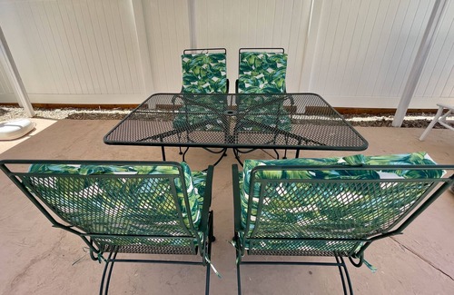 Clean, comfortable, and fully-equipped, this single-level house has new paint and luxury plank flooring, comfortable beds with high thread-count sheets, new ADA-compliant toilets, and high-quality furniture, with a leather recliner and couches. The kitchen includes all the gear, plus basic condiments, spices, reverse-osmosis filtered drinking water, and a K-cup coffeemaker. Outside, there’s a new Weber grill, and laundry room across the breezeway. Bring your canine family members along, for a small additional fee ($60).