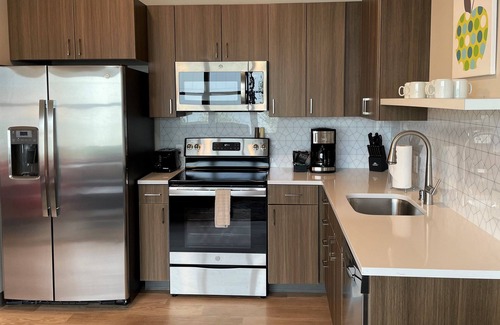 Nestled between the Spokane River's famous Riverfront Park and Downtown Spokane's thriving restaurant and theater scene, this freshly renovated building puts the best of the Lilac City at your fingertips for you and your family. Within a few blocks, you'll find world-class shopping at River Park Square, live music and comedy, and outdoor adventure at Riverfront Park. After an action-packed day, head back to your fully equipped travel apartment for some rest and relaxation, where you'll find conveniences like a full kitchen, in-unit washer/dryer, and fast WiFi.
