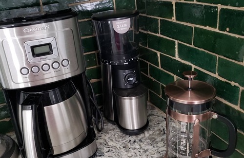 We provide coffee bean grinder, a Cuisinart coffeemaker, French press and an espresso/cappuccino machine for your coffee drinking pleasure