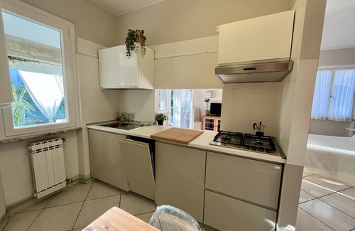 Newly renovated studio with exclusive patio where to dine at the candle light. This tiny and elegant apartment looks like a hotel suite thanks to the new furniture and the extremely researched design. The bathroom has been recently refurbish as well. Our guests may park the car in a private garage and while here they may use the public service to get to the old town which is only 1 mile far. The lake is at a walkable distance (150 meters) and just round the corner our guests may find all the main shops, such as the bakery, the supermarket, the chemistry and so on.