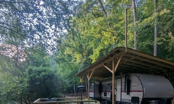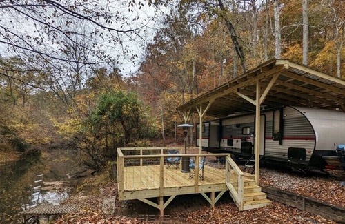 Escape to The Tallapoosa River Hideaway, a secluded campsite with camper nestled on the Tallapoosa River. This private retreat offers stunning riverfront views and direct access for swimming, fishing, and exploring. Perfect for families, the waist-deep water features shallow areas ideal for young children. Message with any questions!