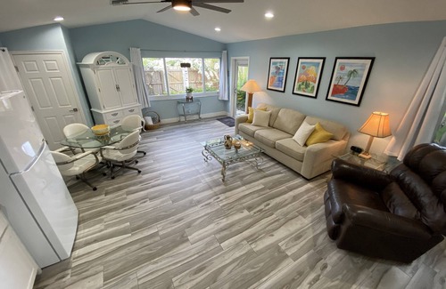This, open floor plan, property has been completely remodeled and updated including a brand new kitchen. The kitchen has all new appliances. This place has wall to wall ''wood'' tile that gives a coastal boardwalk feel. The guest will enjoy a spacious master bedroom with a large walk in closet and a gorgeous spa like bathroom. The master bedroom has a queen and a trundle bed. The living room has a comfortable king pull out memory foam sofa bed. If you need to work, there is a full desk. The large screen smart TV is ready for you to sign into any of your streaming accounts.