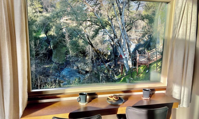 Step into a serene Yosemite escape - featuring a stunning natural waterfall - where nature’s soundtrack begins the moment you arrive. The gentle rush of Nelder Creek sets the scene from your deck. This modern home is thoughtfully curated to create a comfortable, calming and rejuvenating space.