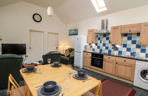 Yr Hen Ysgubor consists of an open-plan living space with a kitchen with electric oven and hob, microwave, fridge/freezer, washing machine, tabletop dishwasher, dining space, and sitting area with TV, books, and DVDs, plus a games room. The bedrooms consist of a double and a twin, serviced by a bathroom. Outside there is an enclosed patio with furniture, plus off-road parking for two cars. Within 7.9 miles you will find a shop, and within 0.8 miles, a pub, and please note this is a smoke-free and pet-friendly property. Highchair and travel cot included in the rent. WiFi, fuel, power, bed linen, and towels included in the rent. Explore Carmarthenshire with a stay at Yr Hen Ysgubor. Note: There are three steps down to the twin room. Note: Guests have access to the large field nearby. This property only accepts booking starting on a Friday