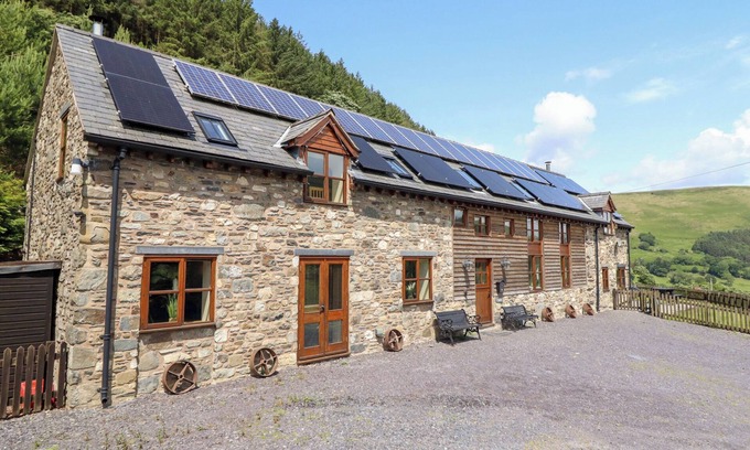 Y Sgubor is a stone built detached cottage on a working sheep farm, two miles from the village of Llangynog. This cottage sleeps twelve people in five bedrooms, consisting of one king-size double, one single with en-suite shower room, one family room with 1 king-size double, 1 single and en-suite shower room, one double, one twin and one bedroom with a pull out double stacker bed. The cottage also has a bathroom, ground floor basin and WC, kitchen with dining area, utility, sitting room with dining area and woodburning stove and a second sitting room with woodburning stove and French doors. Outside this cottage has off road parking for 5 cars, an enclosed garden and a hot tub. With views of the valley and a mountain range, Y Sgubor is an ideal holiday home for friends and families.