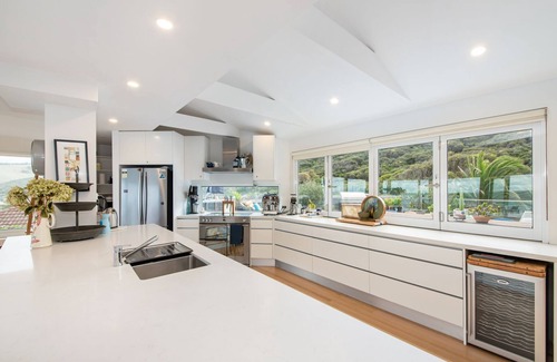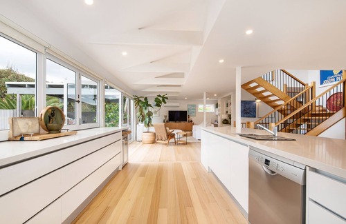 Set over three levels, this stunning beach house offers breathtaking front-row ocean views. The continuous ebb and flow of the tides, revealing rocks and seaweed, provide a unique front-row seat to nature’s ever-changing moods. From playful dolphins to migrating whales in winter, every moment spent here is a sublime experience.