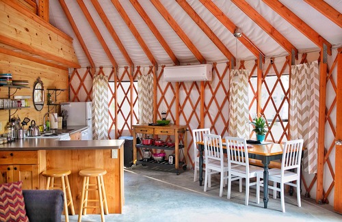 - Eco-Friendly Experience: Enjoy a sustainable stay in fun, eco-friendly yurts that blend seamlessly with their natural surroundings, providing a memorable backdrop for your special gathering.