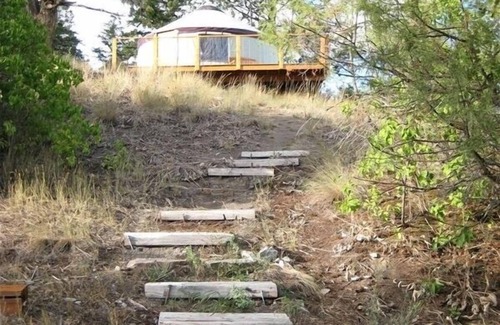 The yurt is not handicapped accessible nor suitable for toddlers due to the steps leading up to the yurt and steep hillside. No smoking or open flames inside the yurt. There is a composting toilet inside yurt. Showers provided in the main house. Picnic table and fire pit at the waters edge, wood provided. Dock and lake front is shared with property owner and resident dogs.