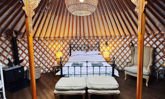 This is an authentic Mongolian Yurt with underfloor heating and wood burning stove. Outside has decking to enjoy, and garden with furniture, firepit, bbq, and seating area. And now free Hot Tub + Sauna.