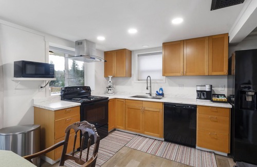 This 1950's lake house has been updated inside and out without losing its vintage charm. Each room has ductless heating/AC while the house retains its working wood burning stove for those chilly PNW nights. But don't spend all day indoors! The lake awaits you year round with its misty mornings, calm waters and meandering coves worth exploring. Or just take in the views from the spacious deck.