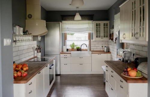 Zatrzymaj się u Nas-Dom na wyłączność, 12 osób, kominek, jacuzzi zewnętrzne, sauna, cisza offers accommodations in Pawłów, 10 miles from Sanctuary in Kałków and 21 miles from Holy Cross Monastery. 10 miles from Świętokrzyski National Park and 25 miles from Bishops’ of Krakow Palace, the property offers a garden and a shared lounge. There's an outdoor fireplace and guests can use free Wifi and free private parking. Leading onto a balcony with garden views, the spacious vacation home consists of 6 bedrooms. Offering a terrace with mountain views, this vacation home also has a satellite flat-screen TV, a well-equipped kitchen with a dishwasher, an oven, and a microwave, as well as 4 bathrooms with a shower and a hair dryer. This vacation home is allergy-free and non-smoking. The vacation home has a picnic area where you can spend the day outdoors. Bartek ancient oak is 21 miles from the vacation home, while Toys Museum is 23 miles away. Radom-Sadkow Airport is 45 miles from the property.
