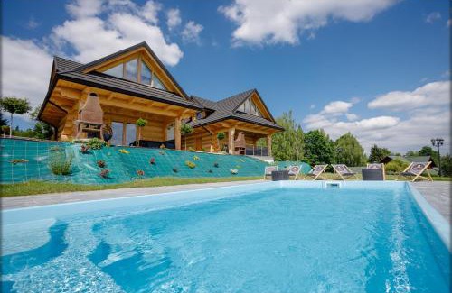 - Maciejowe Wzgórze Domek z dwoma niezależnymi apartamentami ze SPA - Sauna, Jacuzzi, Tężnia, Izba Solna i Solankowa, Balia na wyłączność z hydromasażami