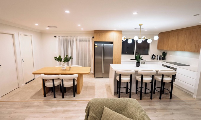 With luxe finishes, spacious living, air-con throughout, and nestled by the Blue Mountains, it’s ideal for families or groups.