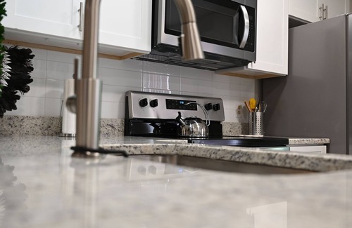 Enter a light filled open floor plan featuring a living/dining combo. Rear bedroom has ensuite bath w/ shower and two large closets. This newy renovated home includes luxury vinyl flooring throughout, new paint, new baths, new kitchen with stainless appliance package and granite counters. smart TV, SONOS sound and internet. New washer and dryer. Plenty of parking and close to major areas! Monthly cleaning is included. Come have a charming stay!
