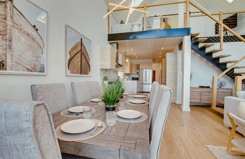 Located on a pristine stretch of highway near where the LaHave River meets the sea, this 2 story Scandinavian style retreat offers stunning views of the Atlantic Ocean through 30’ high windows. This location is the ideal destination for larger families or groups of friends to connect and unwind. Under cathedral ceilings, the open concept living and dining area opens up onto a large, well-furnished oceanfront deck through oversized sliding patio doors. The large master bedroom offers a king size bed and full en suite with custom shower and soaker tub, walk in closet and private seating area. Two additional bedrooms containing a twin bed and double bed are located on the ground floor, and open up onto a large private deck with ocean views. The 2nd floor loft with TV and separate seating area, offers the most spectacular raised views of the ocean and also offers a queen sofa bed. The downstairs main living area also offers and double sofa bed for additional sleeping space. This Luxurious retreat can sleep to 9 guests and offers 2 full washrooms. Hot tub and cedar barrel sauna to be installed in September 2024