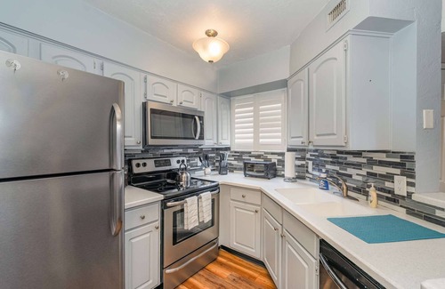 Guest may gain access to the condo anytime after check-in with deadbolt code. The condo is setup completely for guest use and everything is accessible to guests with the exception of the locked hallway utility closet. You will have access to the community pool, jacuzzi and gym from sunup to sundown with the FOB hanging by the entry door. We provide self check-in so we will not meet in person unless the need arises. The listing is setup exclusively for guest use. We are just a message/call away if you need assistance or suggestions of things to do in the area!