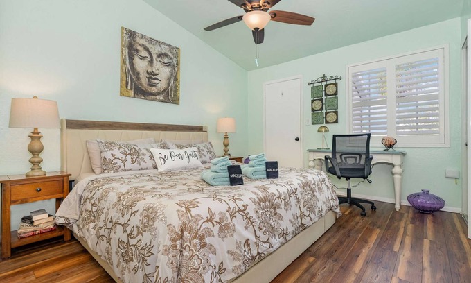 Zen · Serene King Bed Condo · Half Mile from Beach has 1 Bedroom , 1 Bathroom, and max occupancy of 2 people. The minimum rental for this property is 1 nights, but this can change depending on the season you plan on staying. Previous guests have given good rated it, and VRBO labeled it a top-rated Condo because of the excellent services rendered by the owner or manager of this Condo, and has consistently provided great experiences for their guests. Most families or guests that use it recommend it to their friends and some of them are repeat guests. Condo has a friendly neighborhood, and the Ocean Side Village has interesting places to visit. If you want to learn more about the Condo in Ocean Side Village, such as places to visit and things to do nearby, you can check below to learn more.