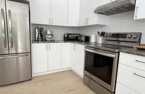 This new Scandinavian-style construction stands with the simplicity of its design and the comfort it offers. Its huge windows will make you feel one with nature. The light-filled, open-plan first floor is spacious, with distinctly defined zones: living room, dining room and kitchen. It also features a multi-purpose room with office area, relaxation area and TV. The three bedrooms on the upper floor can comfortably accommodate 6 adults. Each level is equipped with a full bathroom where the lower floor bathroom also offers a freestanding bathtub overlooking the mountain; perfect for unwinding. The chalet is child friendly and is located by a cul-de-sac access road. Our commitment to well-being is reflected in every detail.