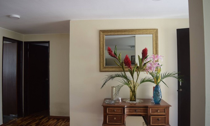 If you are looking for a cozy and safe place in Lima this is the place in the ecological district of Lima, in a beautiful house full of light, spacious rooms, first class services and a delicious breakfast. very comfortable beds for 2 people, bathrooms, with hot guide 24 hrs. access to fast public transport, very close to shopping centers and banks, co-driver for two cars.