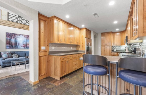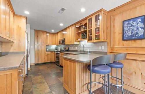 Welcome to the Zermatt Luxury Chalet, a charming and spacious retreat nestled in Midway, Utah's scenic Zermatt Resort. This delightful 4-bedroom chalet, spanning over 3,000 sq. ft is designed to accommodate up to 14 guests, making it the perfect venue for family reunions or group getaways. As you step inside, you are embraced by a welcoming living area featuring comfortable sofas that encourage relaxation and unwinding after a day of adventure. The fully equipped kitchen, adorned with warm wooden cabinetry and sleek stainless steel appliances, is inviting for culinary creations and shared meals. Adjacent to the kitchen is a cozy window seat breakfast nook, flooded with natural light, providing an inviting space for casual dining.
