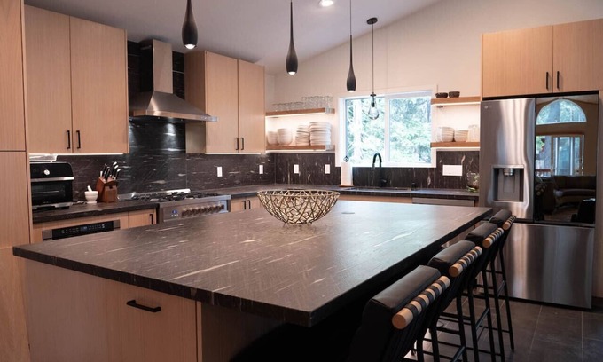Warm up by the fire after a full day of skiing, boating, biking or hiking. This home truly feels like a luxurious treehouse! We've thought of everything in this home and we would love to share it with you!