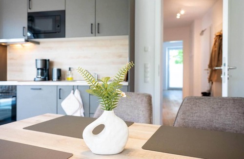 The bright and airy apartment on the 2nd floor is cleverly designed and offers everything for a pleasant stay. Ideal for commuters, project staff, guest lecturers, business travelers, hospital staff, private individuals, or families. Flexible rental periods from 2 nights up to 6 months provide personalized comfort and the perfect accommodation to suit your needs.