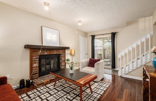 Relax in Columbus at this charming 3-bedroom, 2.5-bath house with two stylish living rooms, a fully equipped kitchen, AC and heating, and a fenced backyard filled with games. Perfect for families, groups, or long-term stays, this home blends comfort, convenience, and fun in one inviting package.
