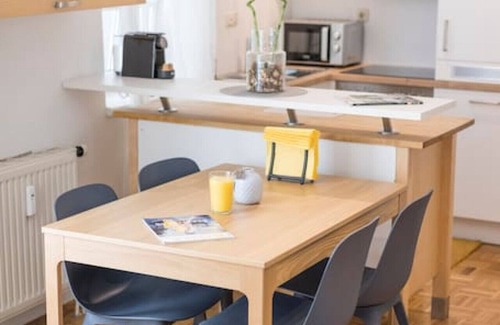 The flat has everything you need for your stay in Graz. It offers space for up to four people. After an exhausting day of sightseeing, you can fall into the cosy double bed to start the next day well rested. It would be a good idea to whip up a quick breakfast in our fully equipped kitchen and eat outside on the terrace, wouldn't it? You've spilled all over your favourite t-shirt? Nevermind, just throw it in the washing machine. A TV is available for cosy evenings at home and free Wi-Fi is available throughout the flat.